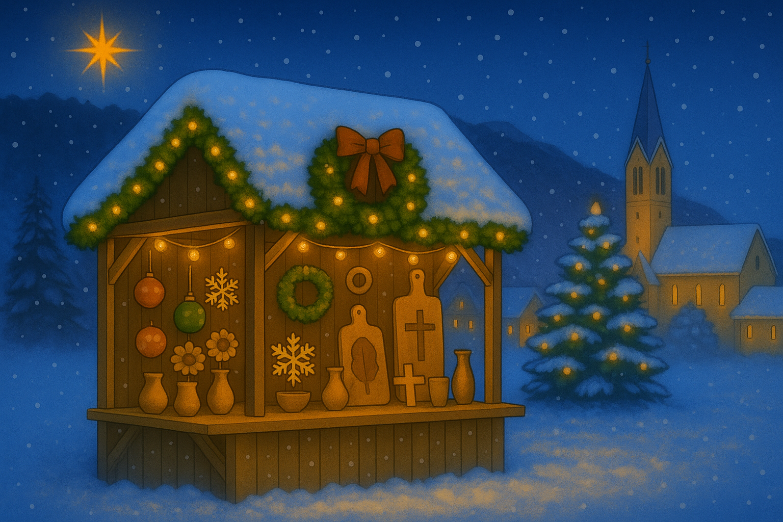 Inmitten der festlich geschmückten Marktstände findest du unseren JOcreations-Stand – gefüllt mit liebevoll gefertigten Holzprodukten, die mit großer Sorgfalt, Kreativität und handwerklichem Können entstanden sind.